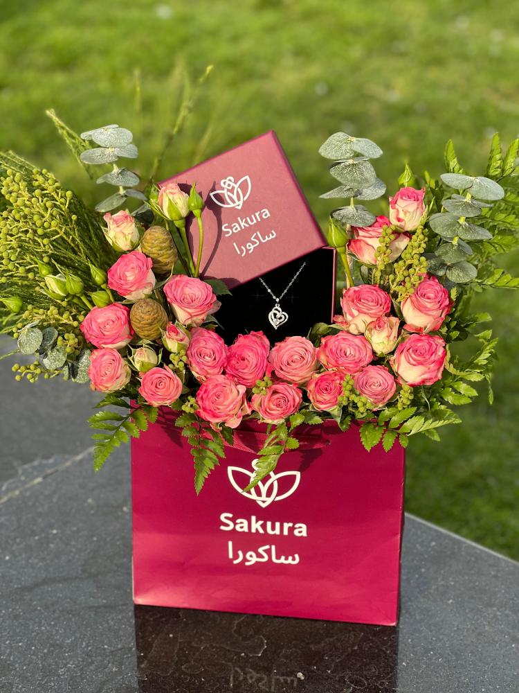 مما يعطي القلادة مظهرًا فاخرًا وأنيقًا. تُعتبر القلادة قطعة مجوهرات مصممة للأناقة والرقي، هذا المنتج واحدًا من منتجات براند ساكورا للهدايا