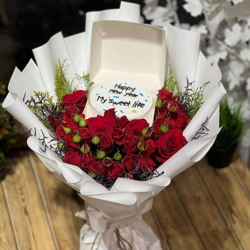 - التغليف: الباقة مغلفة بورق مصنوع من مواد ذات جودة عالية