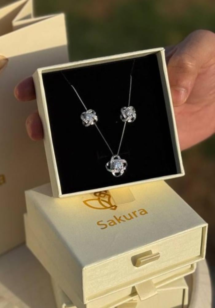 قاعدة ورد وكيك مع هدية نسائية عبارة عن اكسسوار فضة من اختيارك من براند ساكورا